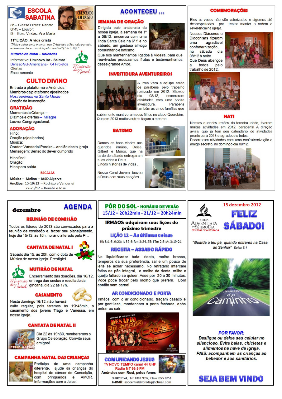 INFORMATIVO DO DIA, 15 DE DEZEMBRO DE 2012